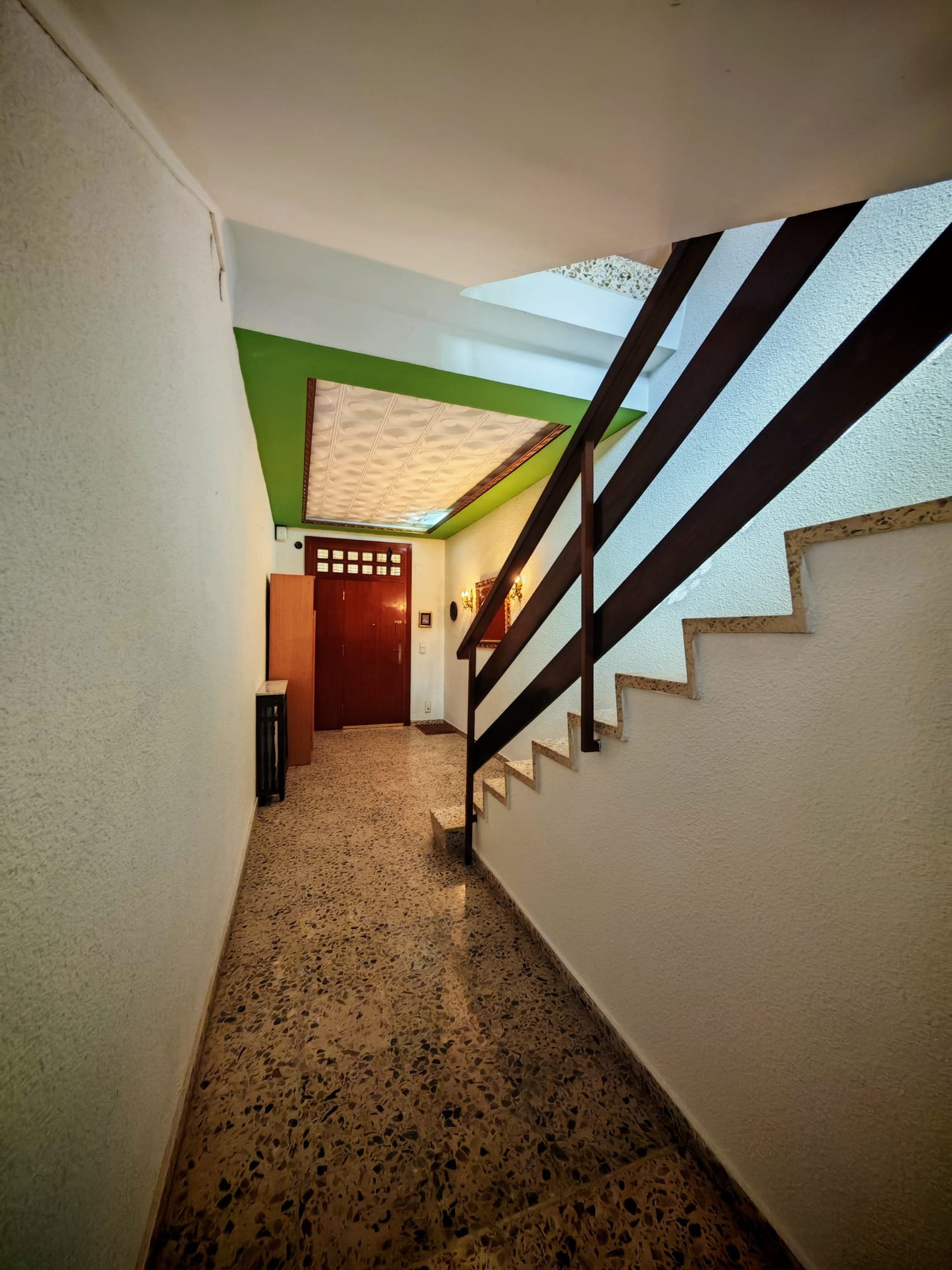 Casa de dos plantas. En la primera tenemos la entrada con la bodega, zona de aparcamiento y una cocina pequeña con acceso a una esplendida terraza jardín. En la segunda tenemos tres habitaciones, cocina equipada con acceso a otra terraza grande, baño completo y armario empotrado en el pasillo. Baño y cocina con reforma a estrenar. Hay otro baño en planta baja con ducha.