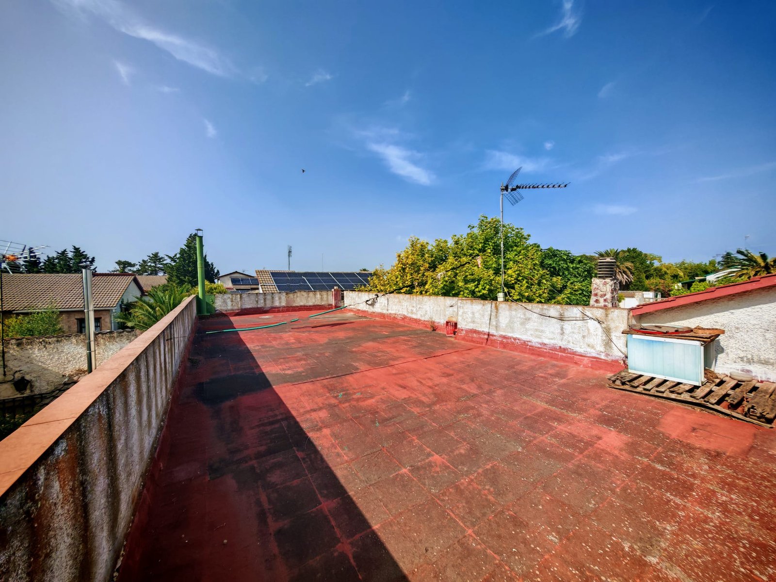 Bodega y terraza: La espaciosa bodega no solo cuenta con otra chimenea que te permitirá disfrutar de un ambiente cálido, sino que también cuenta con un aseo y una zona destinada a barbacoa, perfecta para organizar reuniones al aire libre. Desde aquí, accede a una espléndida terraza que se extiende sobre todo el área de la bodega y las dos habitaciones, convirtiéndose en un idóneo solárium donde tomar el sol o relajarte al final del día.