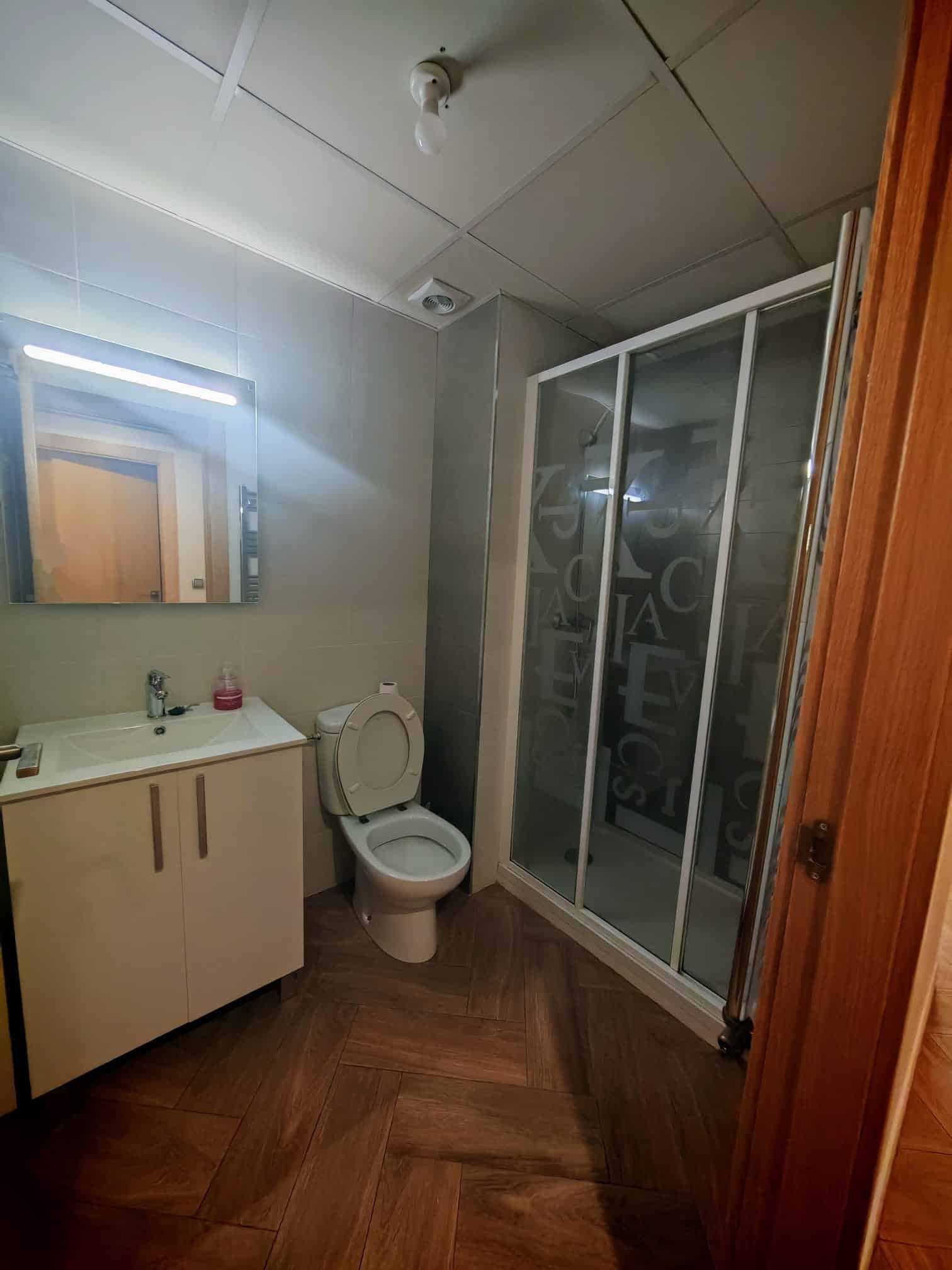 Primera planta: con acceso directo desde la calle principal, encontramos un espacioso salón muy luminoso con grandes ventanales, una cocina amplia y totalmente equipada, una habitación doble y un baño completo con ducha. Todo ello conforma una planta cómoda y práctica para el día a día.