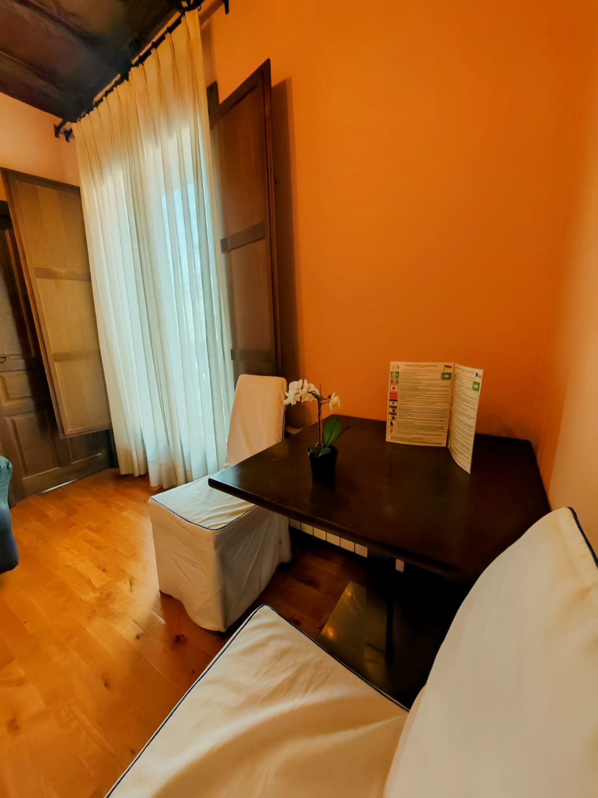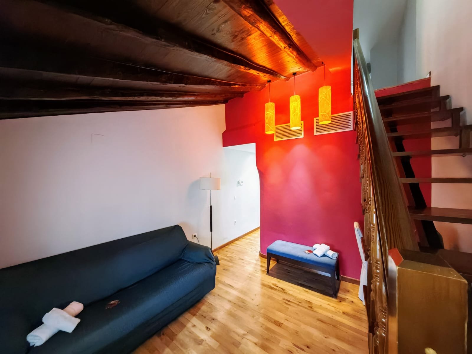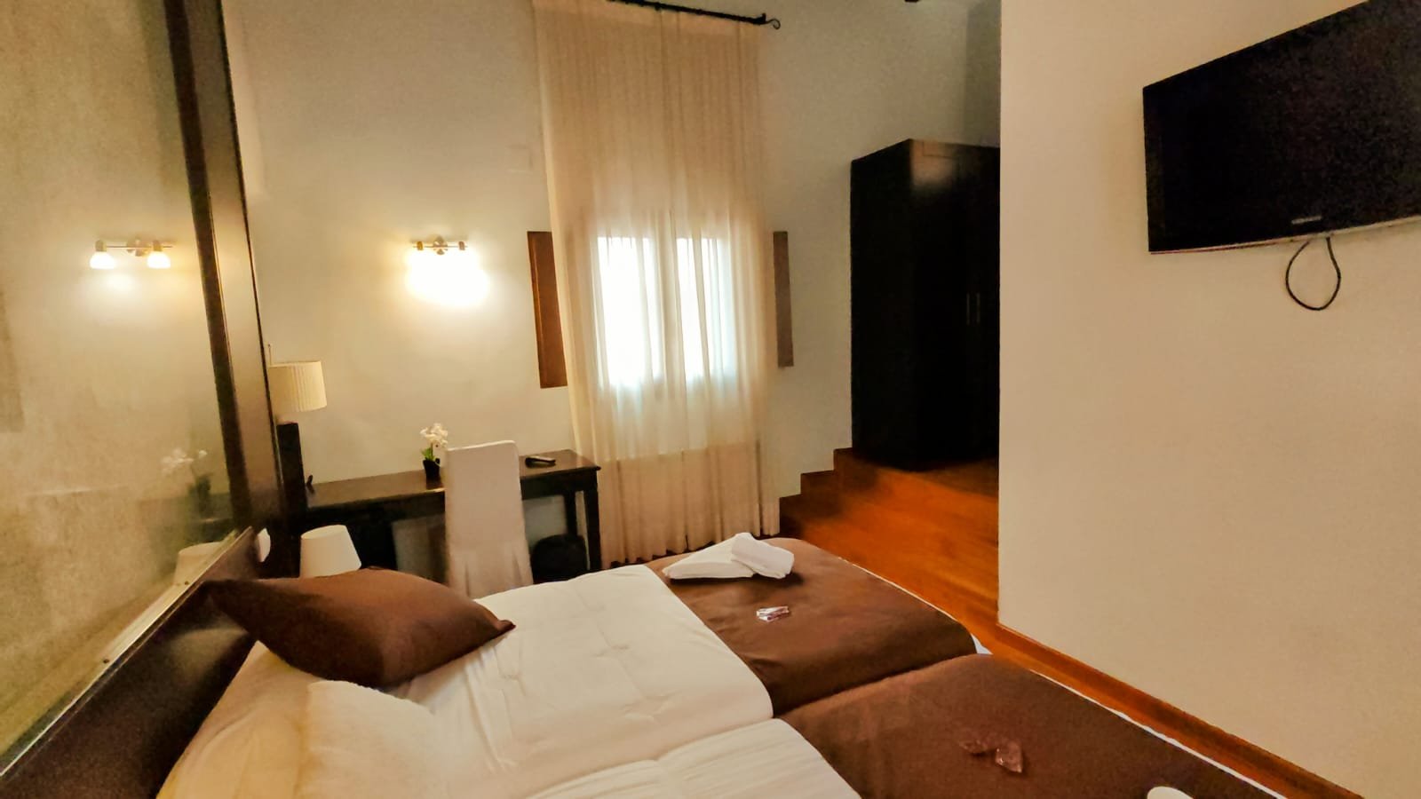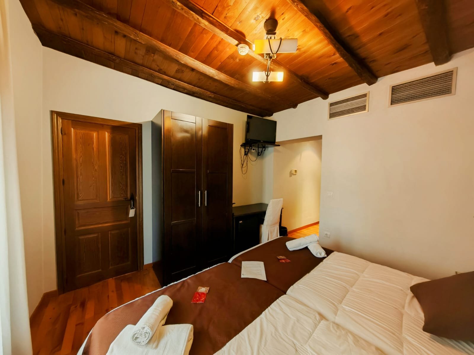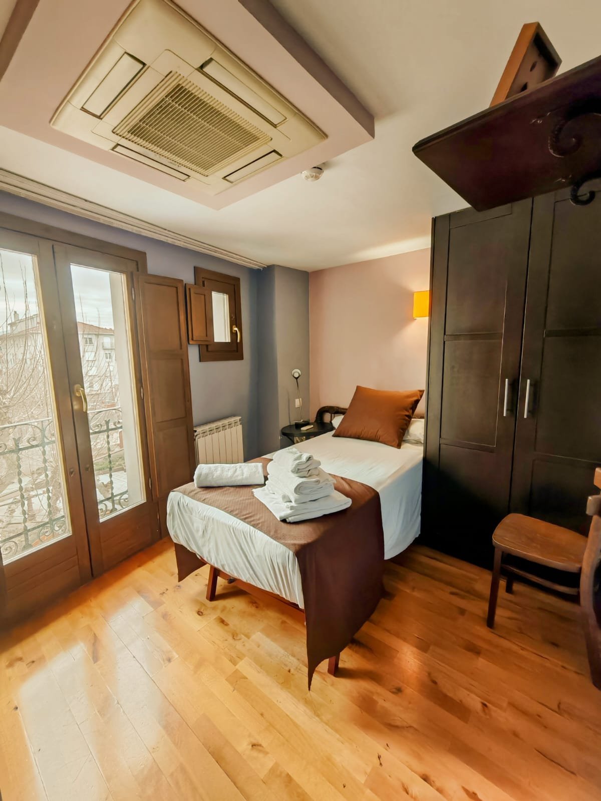 Hotel con encanto distribuido en Siete habitaciones todas con baño completo, aire acondicionado con bomba de calor. Cuatro de las habitaciones tiene sala de estar dos ellas son dobles. Se pueden convertir en triples y una individual. Todas ellas con unas vistas espectaculares y una de ellas es la joya de la posada por su luz, sus vistas y por el mural de pinturas tardo góticas que representan el diluvio universal.