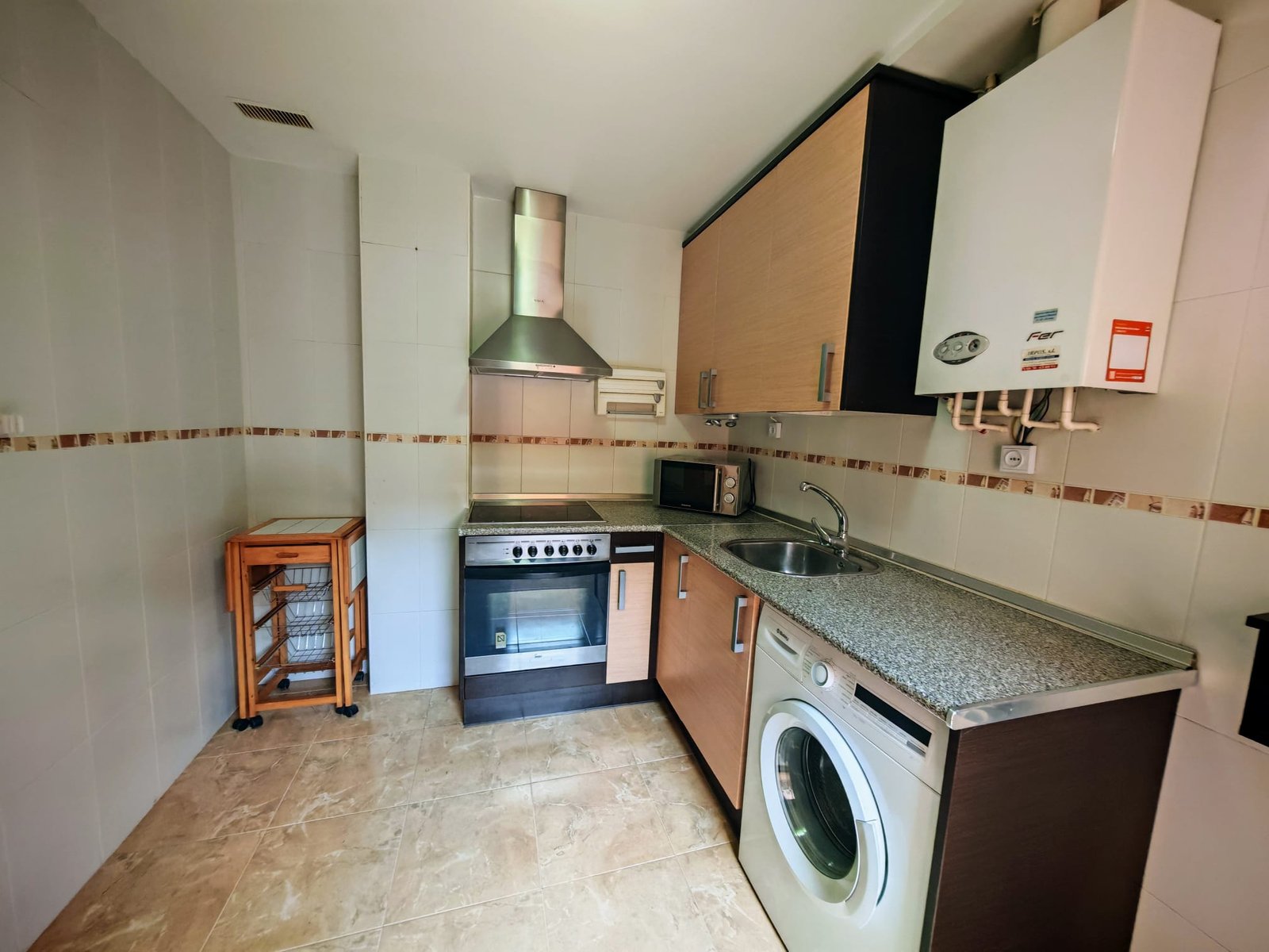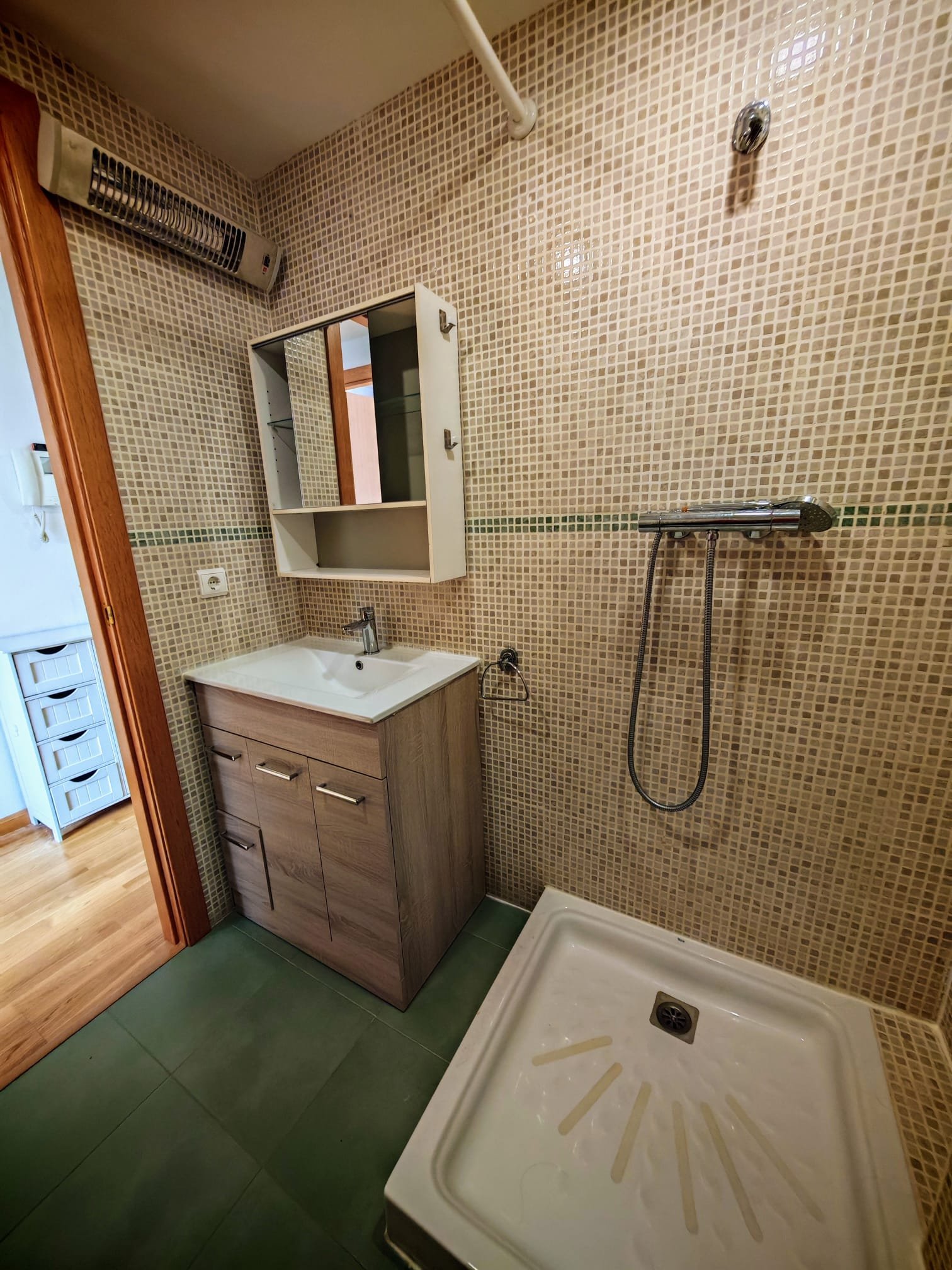 El piso cuenta con un amplio y luminoso salón, donde podrás disfrutar de momentos inolvidables con amigos y familiares. Además, dispone de una acogedora habitación equipada con un armario empotrado, perfecto para mantener todo organizado y a la mano. La cocina, totalmente equipada, ofrece acceso directo a una encantadora terraza, donde podrás relajarte y disfrutar del aire libre. El baño, moderno y funcional, está equipado con ducha para tu mayor comodidad.